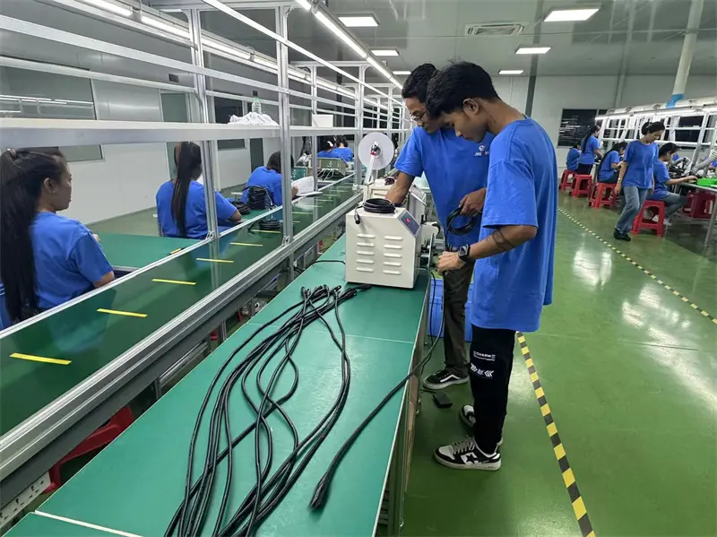Currently, we have two workshops in JINGYI Thailand factory: wire extrusion workshop and manual soldering, testing and packing workshop.