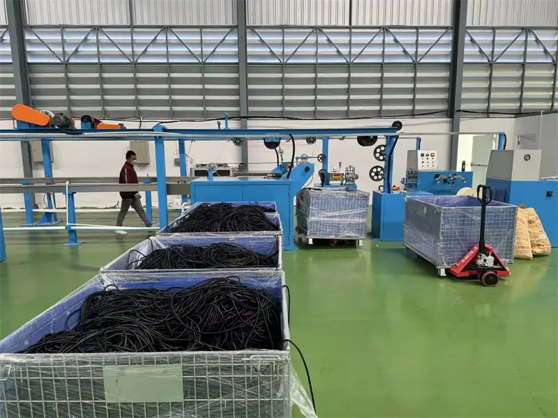 We have two extrusion equipment, one for conductor and one for coating. We also have equipment for making shielding layer both braided and spiral. Equipment for cotton braided outside cable is also available in the factory. We can do whatever patterns upon request.